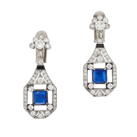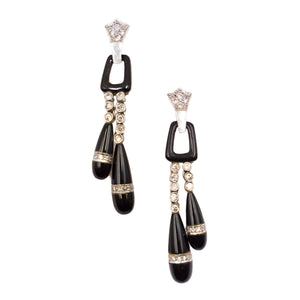 Art Deco Onyx and Diamond Earrings set in Platinum