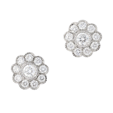 *NEW* Vintage Emerald & Diamond Cluster Earrings 18ct White Gold