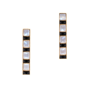 Art Deco Onyx, Moonstone, and 18ct Yellow Gold Earrings