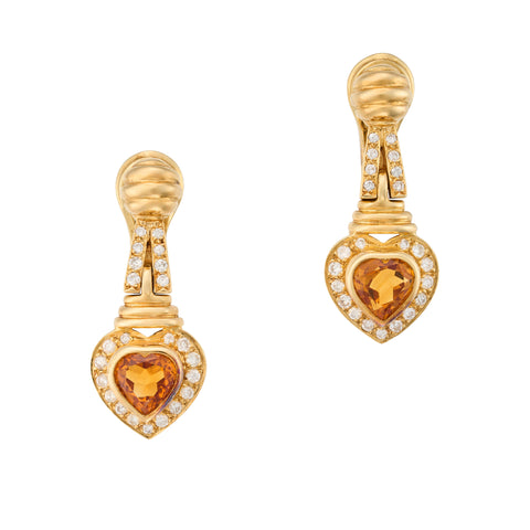 *NEW* Vintage Citrine and Diamond Heart Earrings set in 18ct Gold