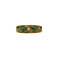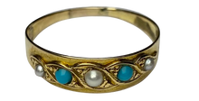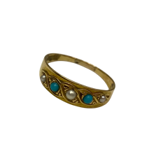 Victorian Five-stone Turquoise and Pearl Ring in 15ct Yellow Gold