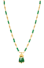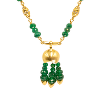 This elegant drop chain necklace features vibrant emeralds and sparkling diamonds, all set in 18ct yellow gold. The emeralds provide a rich pop of color, perfectly complemented by the brilliance of the diamonds for a timeless, graceful look.