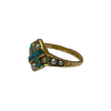 A charming Victorian cluster ring set with bright turquoise cabochons and natural pearls, arranged in a classic quatrefoil motif. Crafted in 15ct yellow gold, this elegant piece features delicately detailed shoulders and a warm antique finish—perfect for lovers of 19th-century jewellery and vivid colour combinations.