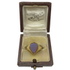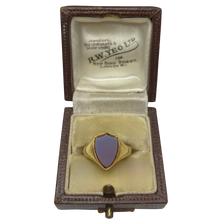 A distinctive Victorian shield signet ring set with a polished lavender chalcedony. Crafted in rich 18ct yellow gold, this ring features a bold shield-shaped face and a smooth, substantial band—making it a perfect choice for everyday wear or as a statement piece. The understated elegance and unique hue of the chalcedony give this ring a quietly luxurious feel, perfect for lovers of antique jewellery.