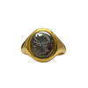 A classic vintage gents signet ring set with an intaglio-carved hematite panel. The shield-shaped face displays crisp intaglio work, framed by a substantial 9ct yellow gold mount. This traditional design is both timeless and stylish—perfect for daily wear, gifting, or as a signature statement piece.