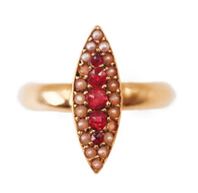 Vintage Ruby & Pearl Navette Ring in 9ct Yellow Gold